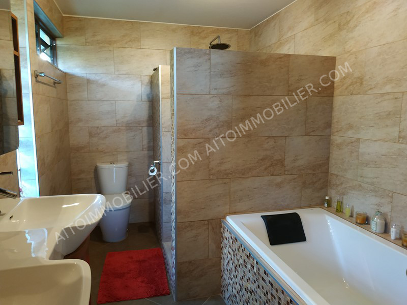 Dans un lotissement très calme sur ARUE, maison récente construite avec des matériaux de qualités, elle se présente sur 2 niveaux, composée de 3 ch + 2 salles de bain, d'une belle cuisine donnant sur le salon et la terrasse. La superficie du terrain est de 865m² avec son faré pôté et d'un garage couvert pour 2 véhicules. Une visite s'impose...