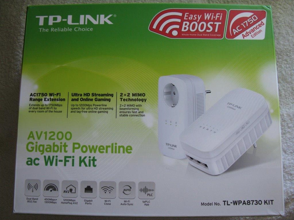 Vends kit de deux boîtiers CPL Dual band 1200Mbps Marque TP-LINK Modèle TL-WPA8730 KIT, prise électrique gigogne, 3 ports Ethernet Gigabit, Wi-Fi. Etat neuf, dans sa boîte d'origine. Tél. fixe : 40 53 26 59 / Voda : 89 29 47 40