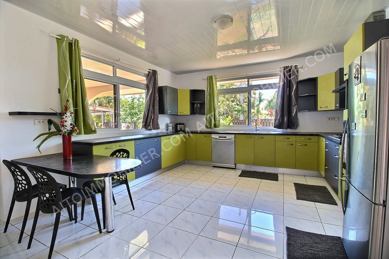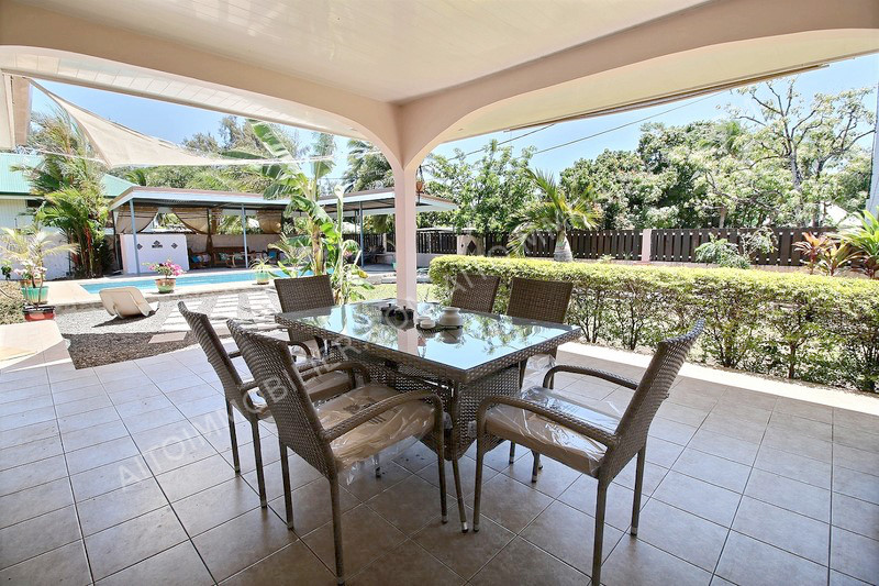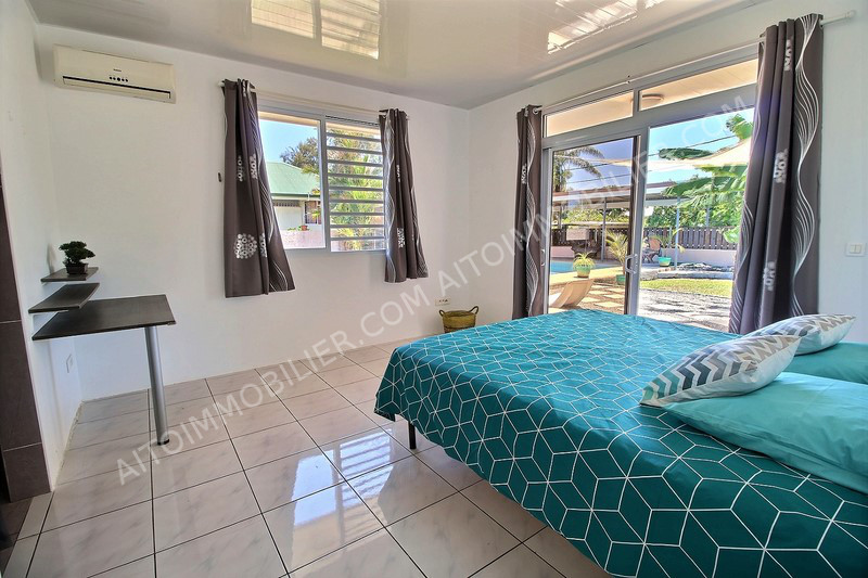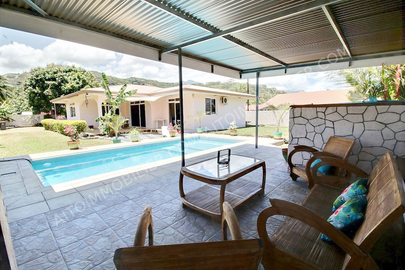 MAHINA - Belle maison meublée à neuf sur un terrain de près de 1000m² clôturé et à proximité de la plage. Elle possède une grande cuisine équipée avec lave-vaisselle, un salon, 2 chambres, une salle de bain, une chambre parentale avec salle de bain et une terrasse couverte. Profitez aussi d'un fare pote au bord de la piscine. Grand jardin planté. Garage couverts avec 2 places de parking, une buanderie et une salle de bain extérieure. Environnement calme et paisible. Entretien jardin et piscine inclu.