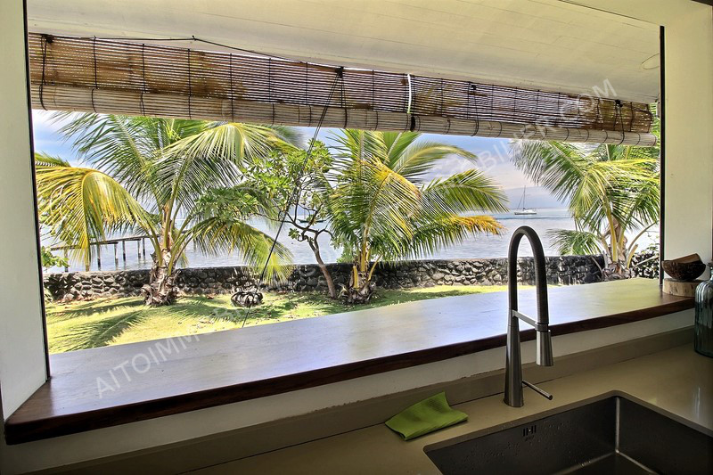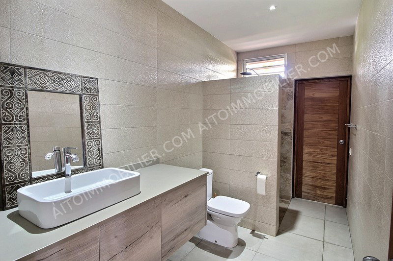 Punaauia bord de mer, belle villa moderne au style Balinais comprenant 4 chambres et 4 salles de bains. Belle cuisine avec vue mer, grand salon, terrasse couverte et salle à manger extérieure. Buanderie, WC visiteur, grand garage couvert pour 2 voitures. Libre au 1er Décembre.