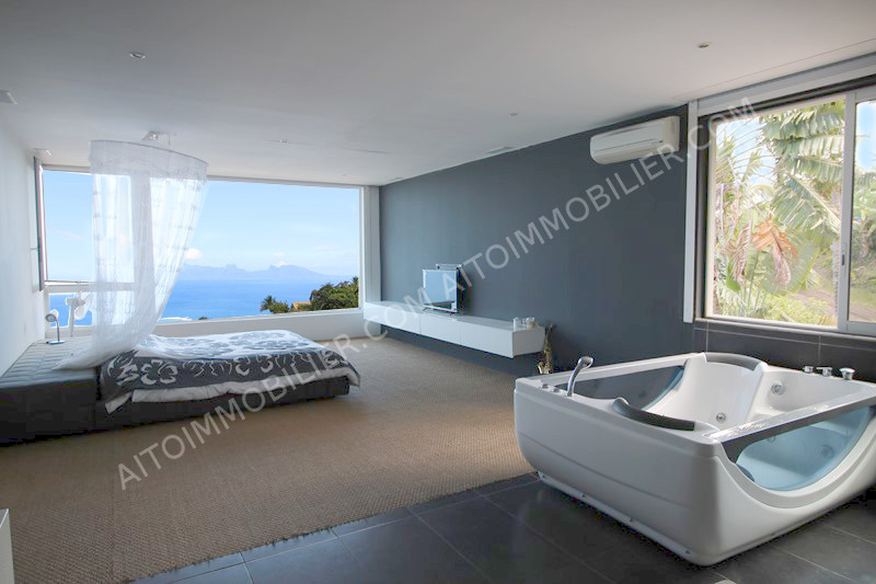 PUNAAUIA En exclusivité, Prestations d'exception pour cette maison de décoration moderne et épurée, plus de 300m² habitables avec volumes rares, vue époustouflante, 4 chambres climatisées, magnifique dressing, salle de jeux, piscine à débordement avec mur cascade, volets roulants, buanderie, garage 2 voitures.