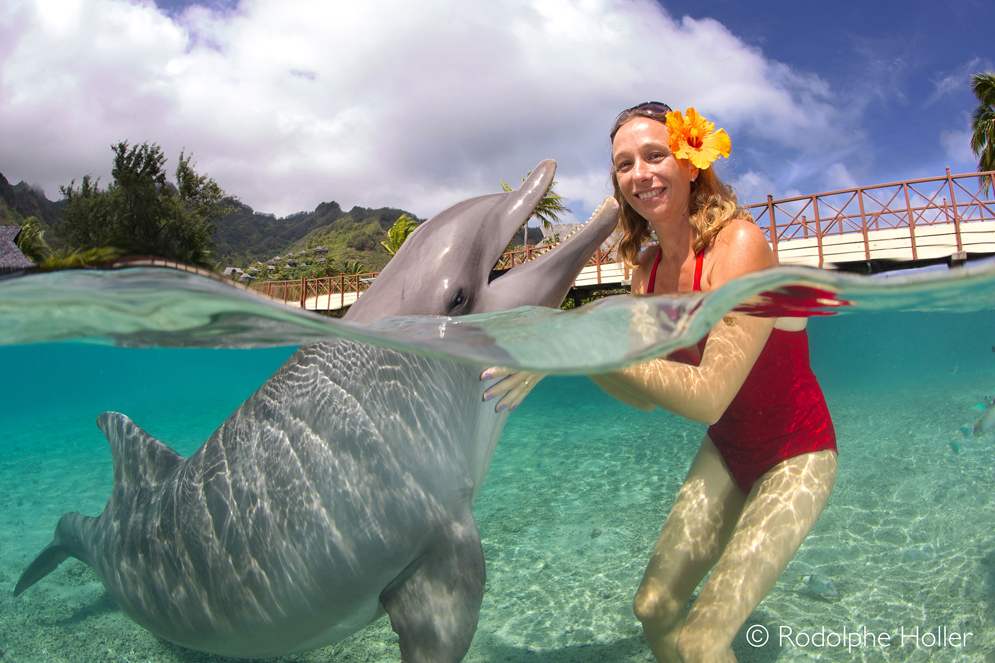 C’est dans les eaux turquoises du lagon que ses trois dauphins évoluent dans un cadre exceptionnel au cœur de l’hôtel InterContinental Moorea Resort & Spa