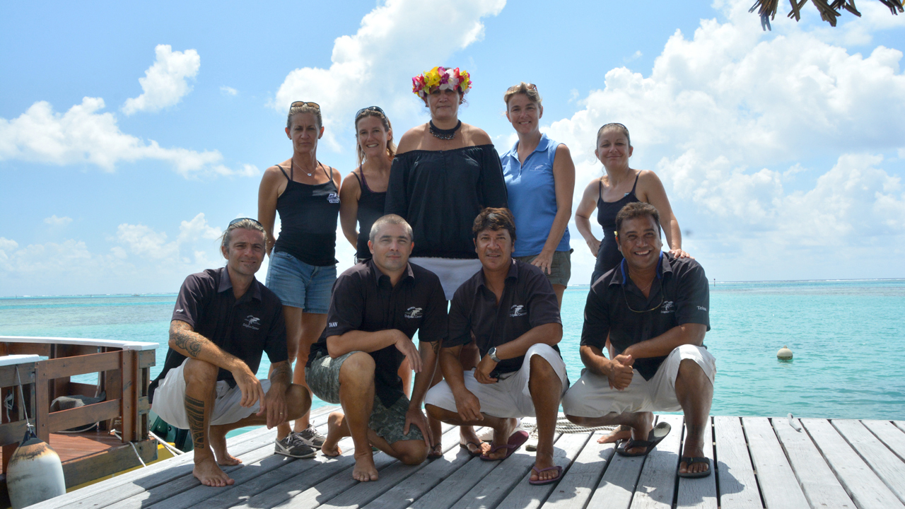 Le Moorea Dolphin Center compte 7 soigneurs  à temps plein. Le directeur animalier, diplômé de l’EPHE (Ecole Pratique des Hautes Etudes) cumule plus de 20 ans d’expérience avec ce groupe de dauphins.
