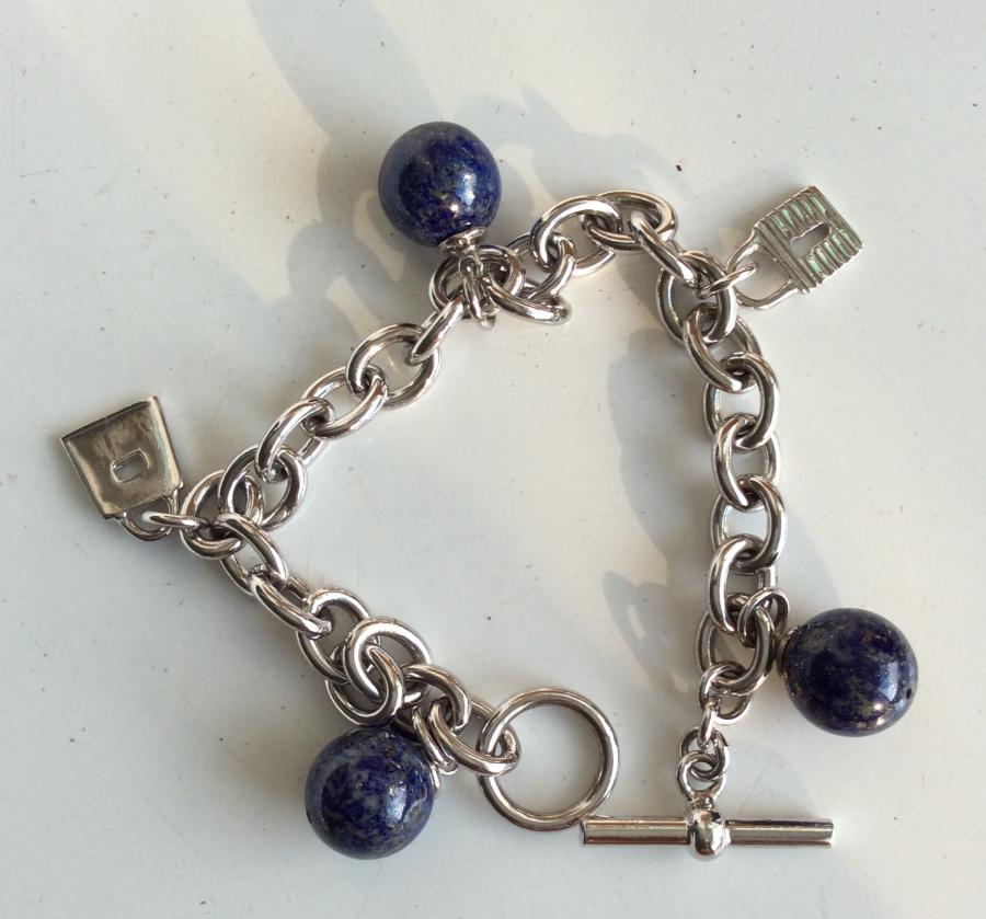 Bracelet argent Avec breloques boules bleues.