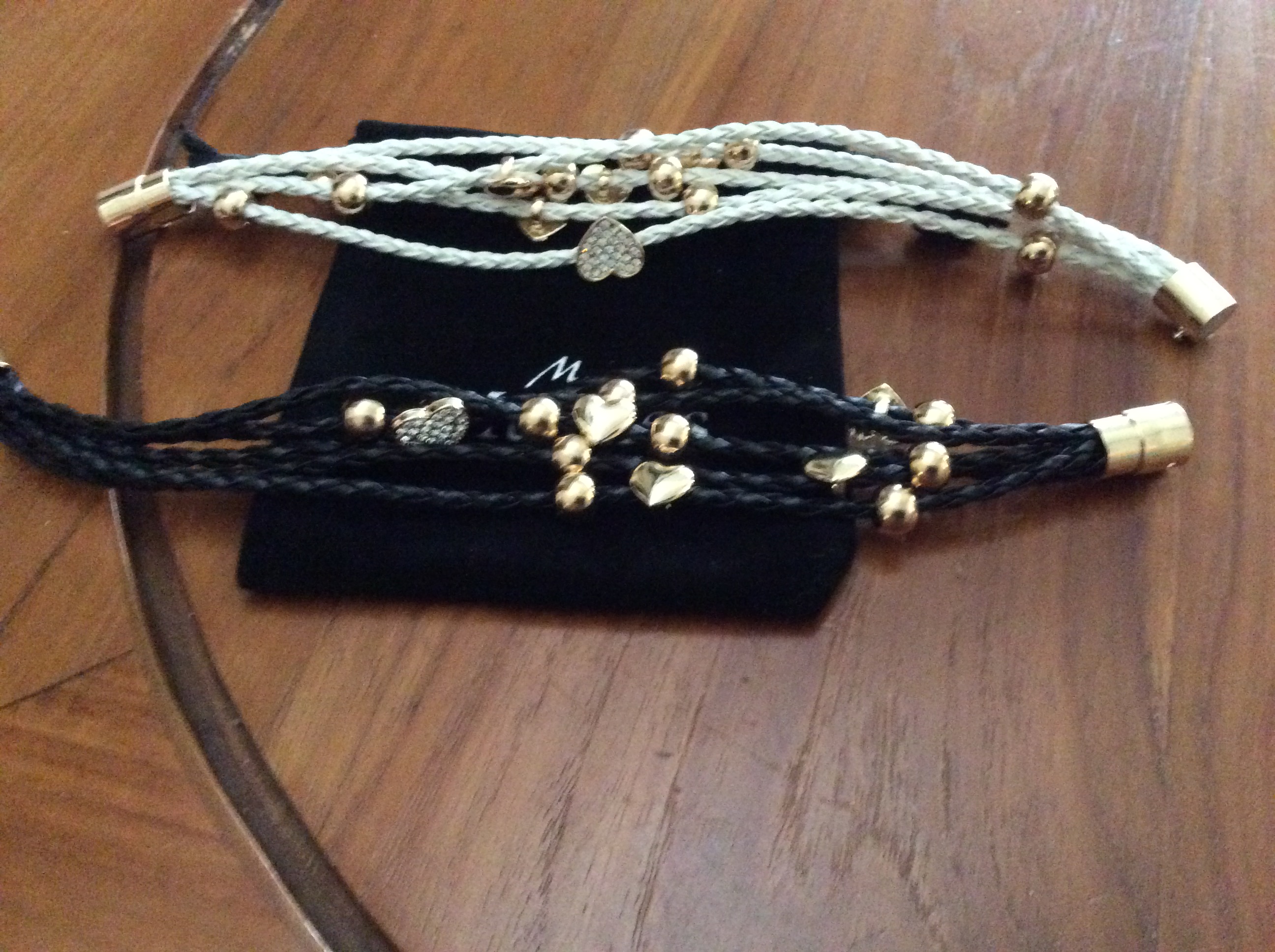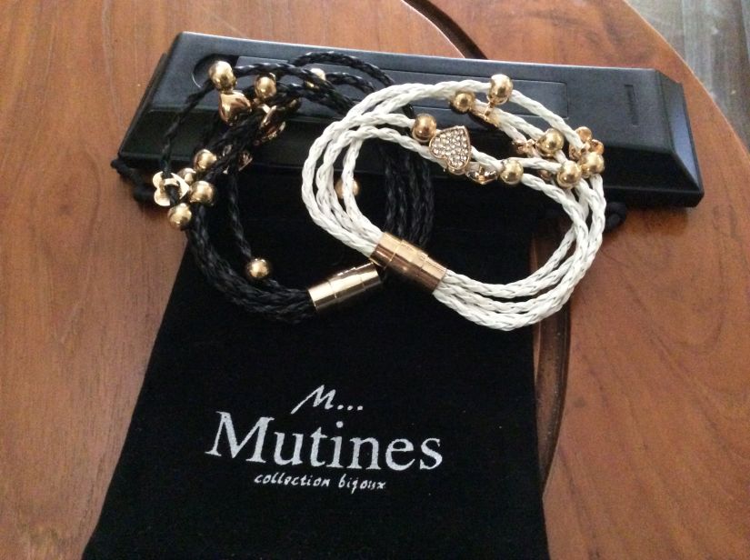 Petits cadeaux pour les fêtes bracelets fantaisies blanc ou noir assortis de breloques dorés 1500F/1 ou 2500F/2 avec sa pochette - au 87786331