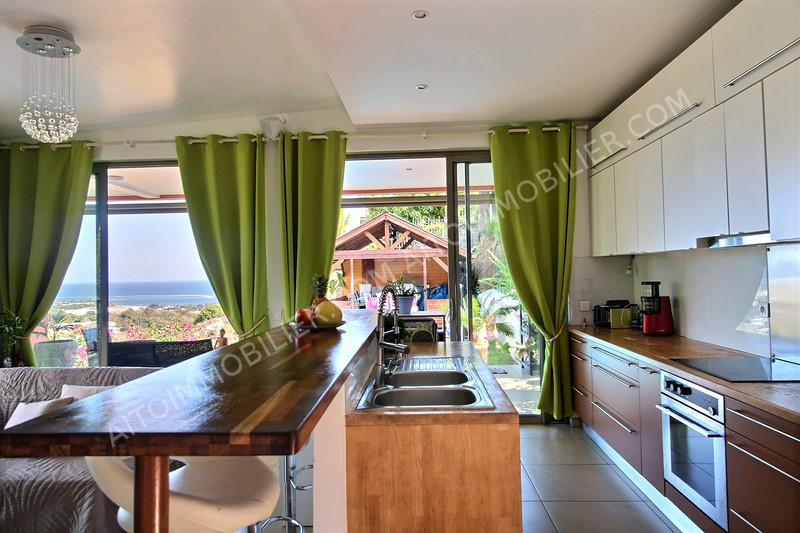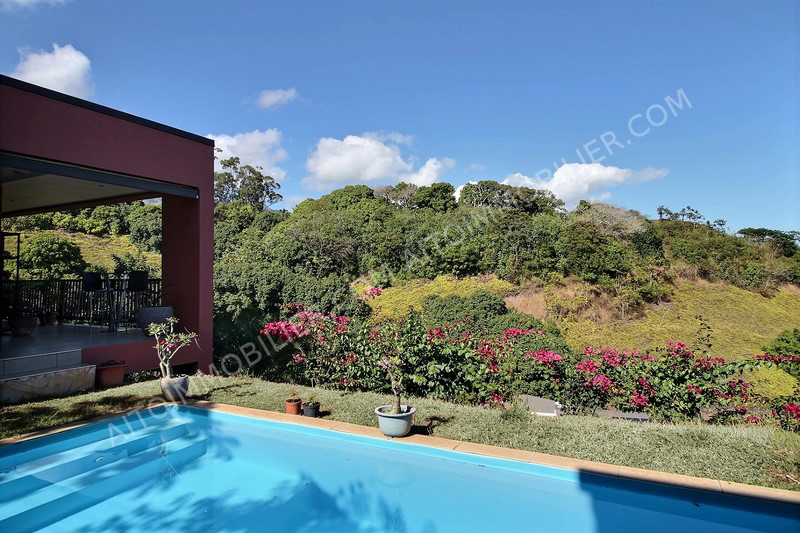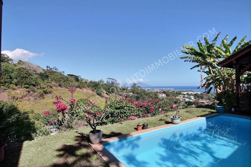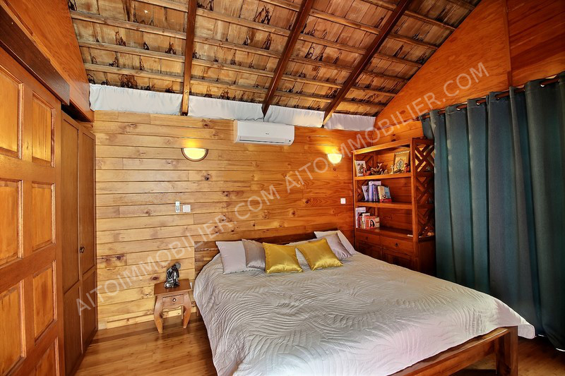 Sur les hauteurs de Arue, dans un lotissement calme et sécurisé, belle et grande propriété (5 chambres et 3 salle de bains) bâtie sur un terrain clôturé et arboré de 1350 m²: - La maison principale est composée de 3 chambres et 2 salles de bain, un espace bureau, une cuisine moderne ouverte, donnant sur le salon et sur une grande terrasse. Bel espace piscine avec Fare Potee en bois et douche extérieure en pierres. - Une dépendance style chalet en bois de 2 chambres et 1 salle de bain. Magnifique vue mer, Moorea et montagne. Aucun vis-à-vis. Garage couvert 2 voitures. Panneaux solaires.