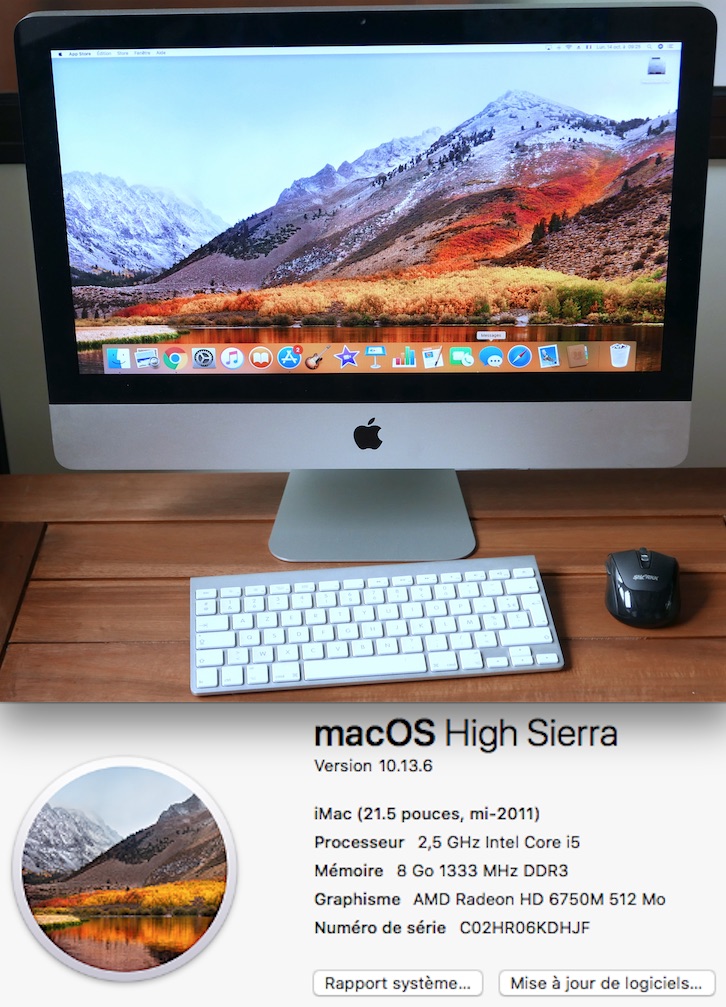 Ordinateur Apple iMac 21 pouces 2011, OS High Sierra, clavier et souris sans fil