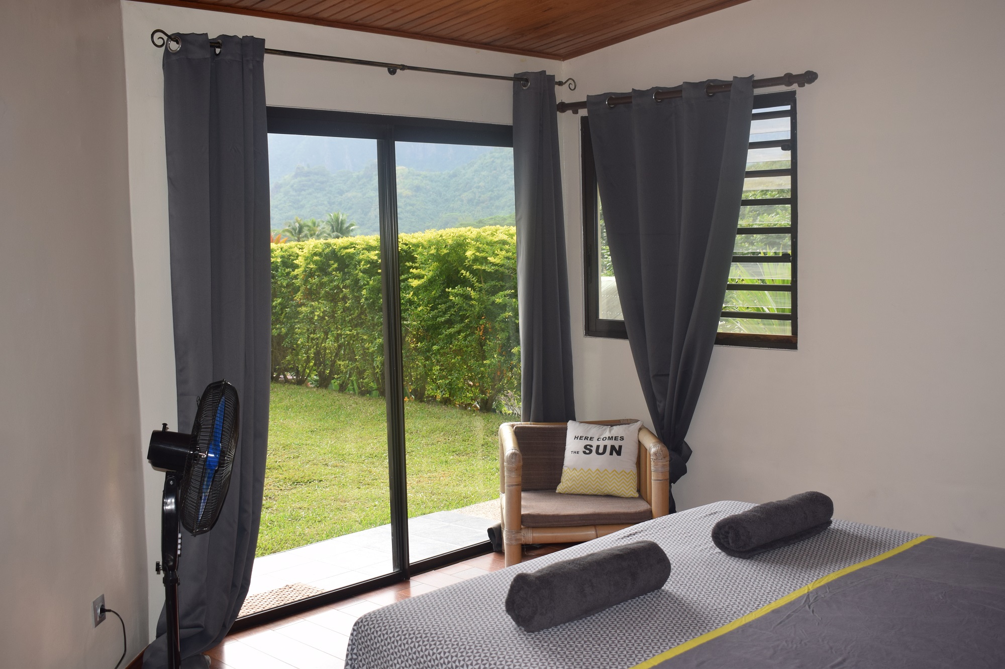 Située au cœur de Moorea, notre maison vous offrira une pause détente dans une des plus belles îles du Pacifique Sud. Située dans la vallée des ananas, sur l’unique route traversière de l’île, vous pourrez découvrir à pied la beauté de notre île, de l’intérieur. Avec ses trois chambres et ses deux salles de bain, cette villa offre une grande suite parentale donnant sur une agréable piscine ainsi qu’un grand séjour et une belle terrasse couverte. 6 personnes max - 13500 fcp par nuit (2 nuits min) Week-end du vendredi au dimanche : 36000 fcp CONTACT et INFOS : manuakaihome@gmail.com https://www.facebook.com/Manuakaihome2018/
