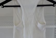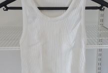 Débardeur blanc aux emmanchures américaines (épaules dégagées dans le dos)